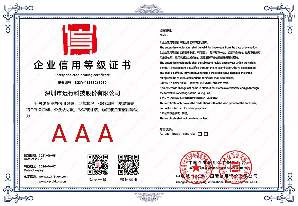 AAA企業信用等級證書