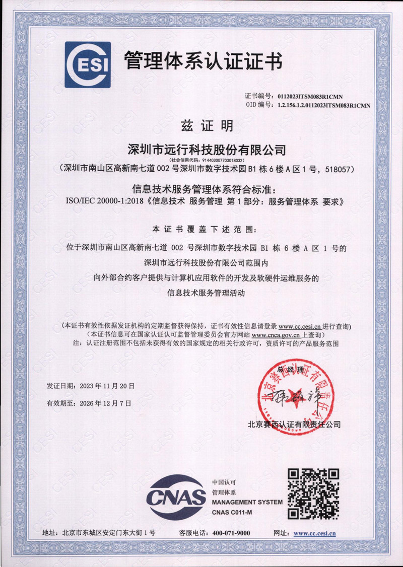 ISO20000-1:2018信息技術服務管理體系認證