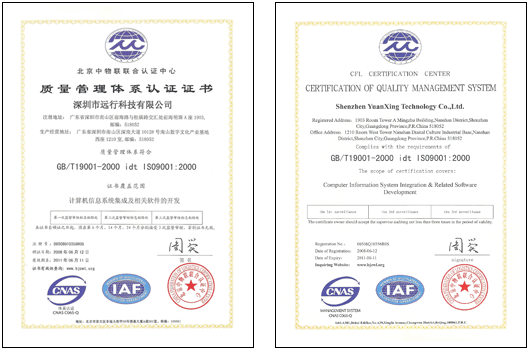 6月12日,深圳遠行科技順利通過GB/T190001-2000 idt ISO9001:2000質量管理體系認證,從而使公司在軟件研發管理和計算機信息系統集成能力跨上了一個新臺階。