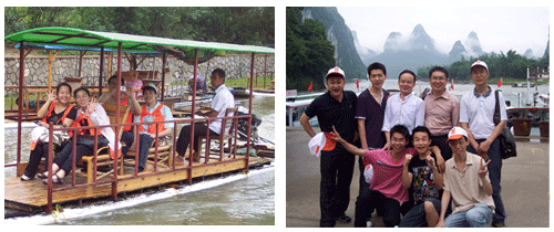 在公司領導及全體員工的努力下,公司2009年上半年經營再創佳績,為此公司于5月22日至25日組織全體員工桂林陽朔三日游。5月22日下午,從北京、成都、廣州等地各辦事處的駐外員工紛紛到達深圳,統一在深圳總部集合前往風景優美的陽朔。桂林以雄、奇、險、秀聞名,員工們飽覽了當地極具特色的自然與人文景觀,使緊張忙碌的員工身心得到充分放松。