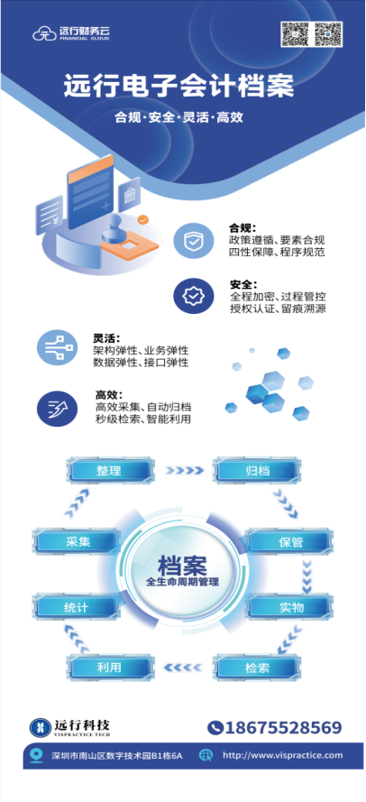 遠行本次推出的新品深度融合?「紙質檔案全流程可視化」 與 「電子檔案全周期智能管理」 兩大體系,實現電子會計檔案雙核解決方案!為企業構建安全、規范、高效的會計檔案全生命周期管理模式。方案嚴格遵循國家標準,助力企業實現: