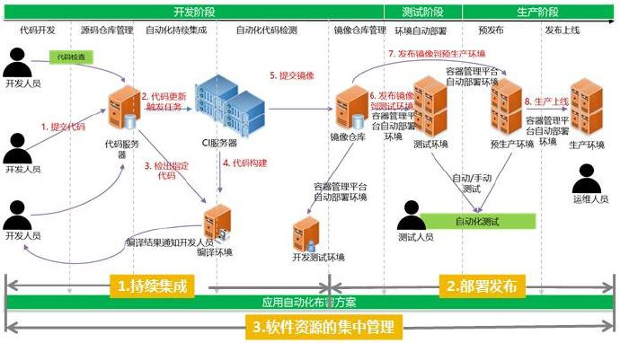 在DevOps最佳實踐里面分為了研發管理,持續交付和技術運營幾個關鍵的過程域。但是在實踐的過程中,最容易出現問題的不是單個技術點,而是跨域的協同問題,或者說研發過程管理和持續集成交付本身就是密不可分的兩個部分,我們只是為了容易理解和學習將其劃分為了不同的過程域而已。