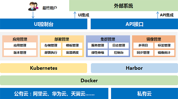 容器云基于Docker容器,Kubernetes和Harbor,提供應(yīng)用、鏡像、容器的統(tǒng)一管理平臺。同時通過可視化的編排工具簡化應(yīng)用部署流程、縮短上線周期。該平臺還提供自動化運維能力,減少人工成本、保障業(yè)務(wù)連續(xù)性。