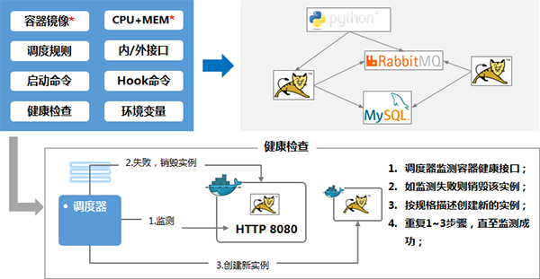 容器云通過可視化的編排工具,將資源、鏡像、網(wǎng)絡(luò)、存儲、健康檢查策略等信息組合為服務(wù)模板,并可通過一鍵部署功能進行容器的發(fā)布。