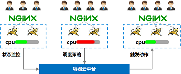 平臺可實時監(jiān)控容器集群的關(guān)鍵性能指標(biāo),并根據(jù)調(diào)度策略進行實時運算,針對已過載的集群進行動態(tài)擴容,對資源冗余的集群進行動態(tài)縮容。