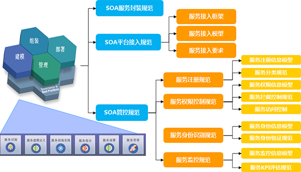 整個SOA開發實施的過程標準化,通過制定合適的標準規范,明確SOA開發實施全生命周期各個階段重點的規范標準,實施模板,開發過程標準和指導書,使各方對SOA具有統一的認識并具有統一的語言,保證SOA開發實施效果。
